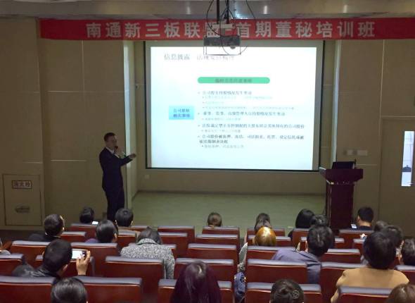 2017年3月28日,南通金融科技城的路演中心内“大咖”汇聚!是日,南通新三板联盟首期董秘培训班在此正式开班。来自全市的50多位新三板挂牌企业董秘及相关人员参加了本次培训。进门财经李英杰、安信证券蔡成...