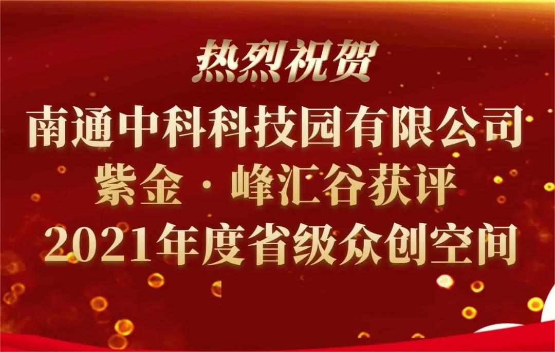江苏省科技厅发布《省科技厅关于公布 2021年度省级备案众创空间的通知》,南通中科科技园——紫金•峰汇谷入围。